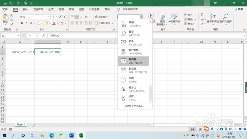 在B2单位格输入=int