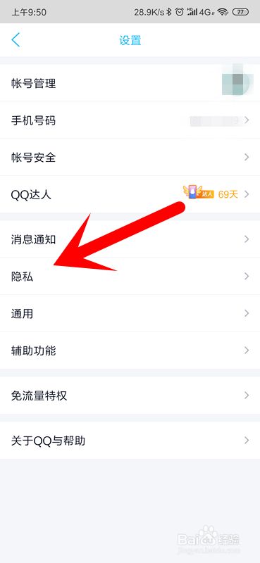 我们在设置界面,找到隐私,点击隐私进入。