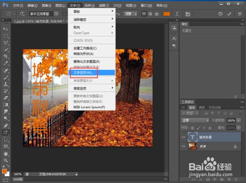 点击文字东西,选择橙色,输入城市秋景;