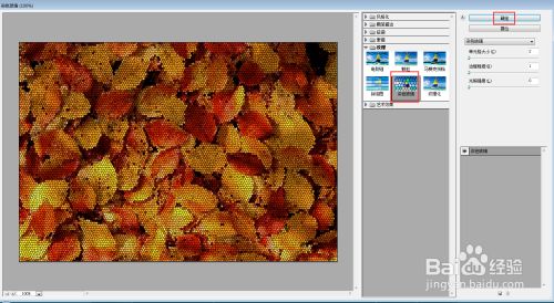 在纹理中选择染色玻璃,设置好参数,按确定;
