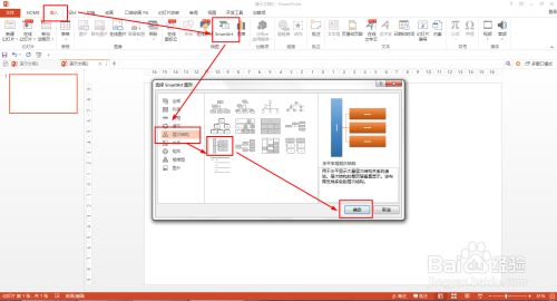 SMARTART东西——设计,在更改颜色设置蓝色边框白色填充结果——SMARTART样式选择白色轮廓。