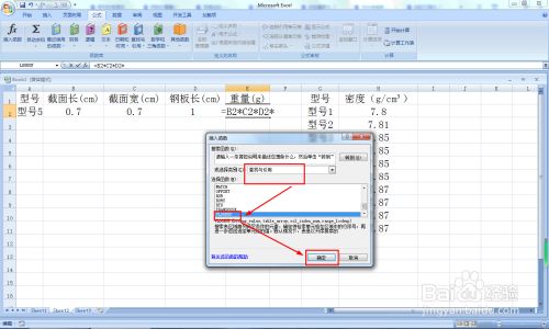 G1输入:型号,下地契元格输入相关钢板型号——H列输入响应钢板型号的密度,单元是:(g/m³)。