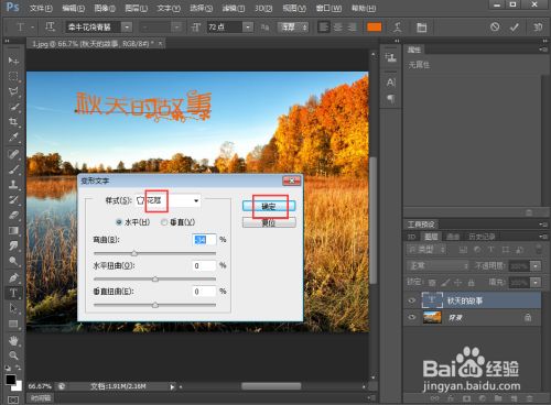 点击文字东西,输入秋天的故事;