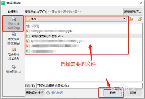 选择左侧“原有文件或网页”图标,输入要跳转的网址,点击确定按钮即可。