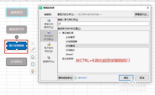 选中图形,按CTRL+K调出超链接编纂窗口。