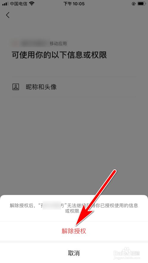 下方提醒框内点击解除授权的按钮,即可解除应用软件的授权。