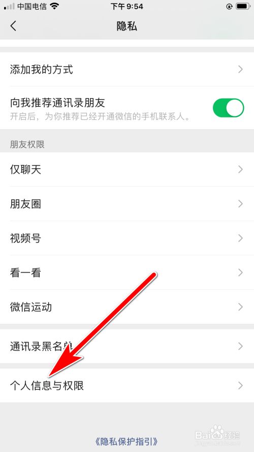 进入应用设置后,掀开隐私的项目。
