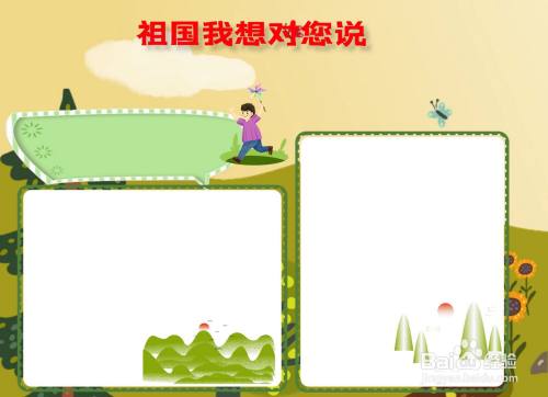 新建一个图层,写好手抄报的报名故国我想对您说;