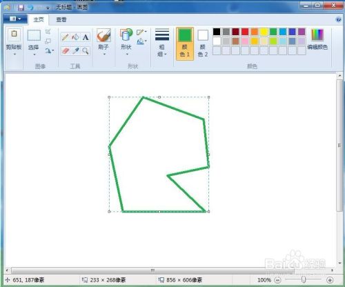 画第七条边时,注重将终点与第一条边的起点重合,一旦重合,在画好的图形上就呈现了六个句柄,绘制就竣事了;