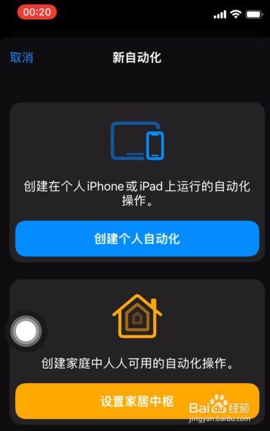 1、首先在快捷指令的主动化功能中,建立一个新的主动化。