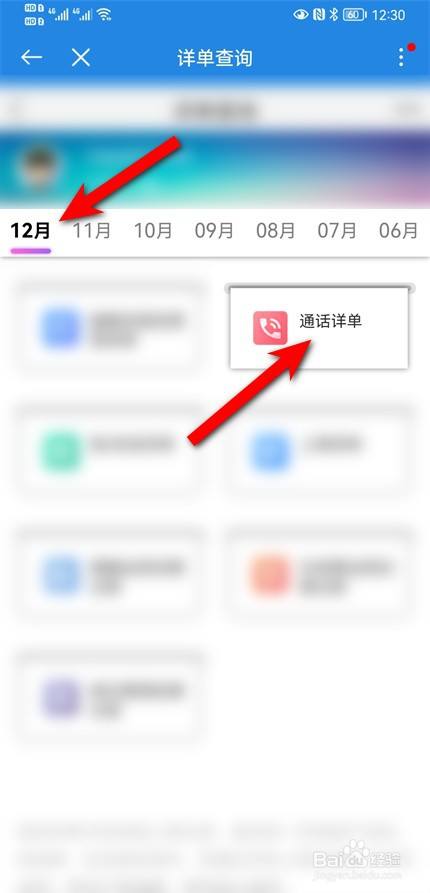 选择月份,点击通话详情即可查看。