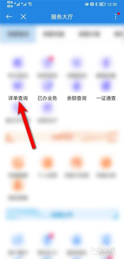 进入办事大厅页面,点击详单查询。