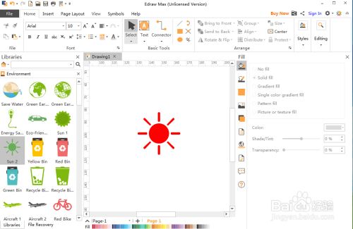 我们就在Edraw Max中建立好了一个带光线的红太阳。