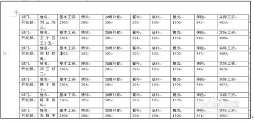 在新的文档中先插入一个和数据源工资表(图2)一样的工资条格局。