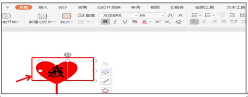 点击开始菜单,鄙人面东西栏中对文字字体,字号进行调整,将文本框用鼠标拖动到心形图形中心。