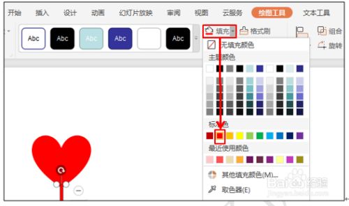 新建PPT,在插入菜单下选择外形东西,鄙人拉菜单中选择心形图。
