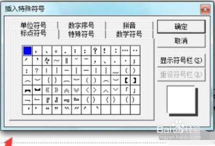 点击特别符号选项,弹出插入特别符号对话框,如图所示: