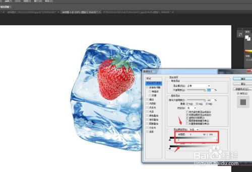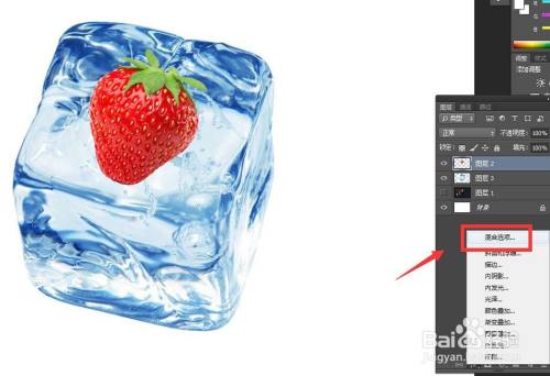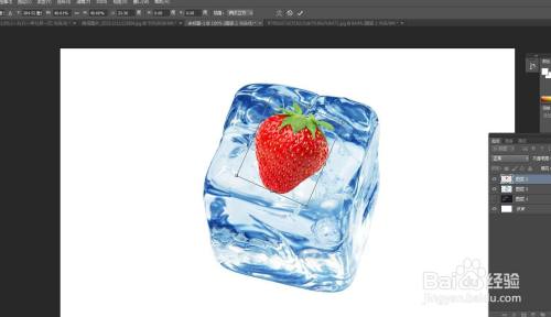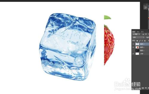 找到一个冰块的素材,并将草莓去除白色底色。