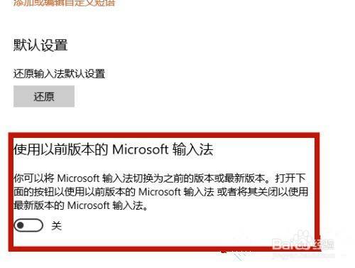 5、下拉到最后将“利用以前版本的Microsoft输入法”选项给打开即可解决win10输入法不显示选字框的问题。