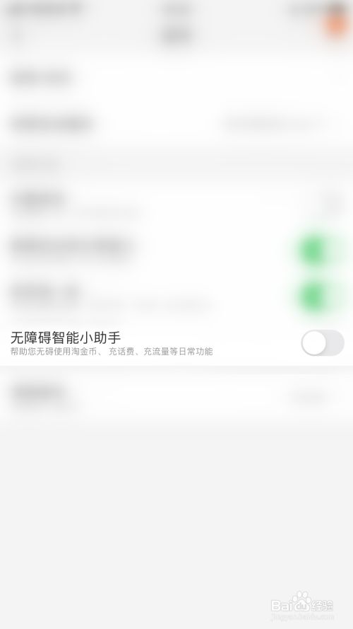 “无障碍智能小助手”后面的圆点变为灰色即暗示淘宝封闭无障碍智能小助手当作功