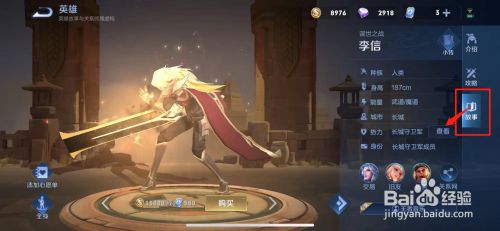 通过游戏中的商城英雄栏进入到李信主页,进入故事里面查看小传,这样就可以看到关于李信的背景故事了。