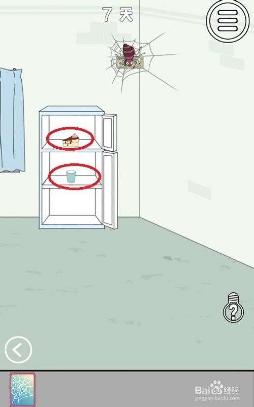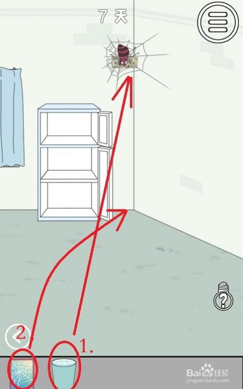转换到右侧,把有水的杯子拖到墙角的蜘蛛网上,