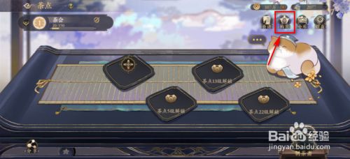 进入到【茶点】页面后点击右上角的【购买】功能。