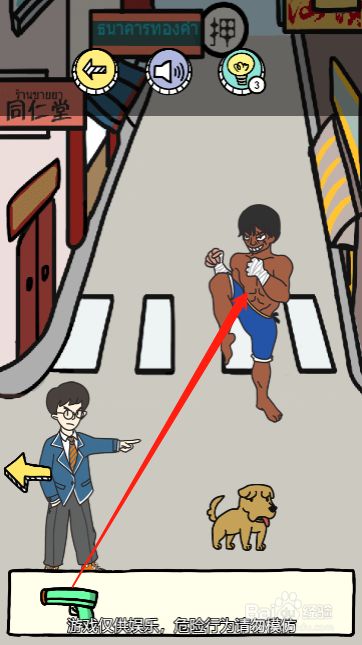 最后切换到最右边的场景利用手枪击毙坏人即可过关