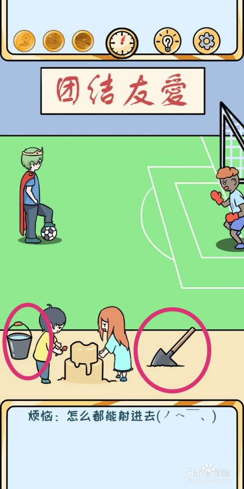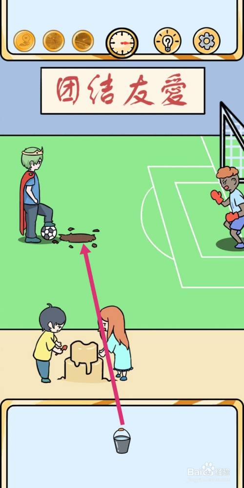 足球碰着泥水后,就无法被踢进球门,游戏过关。