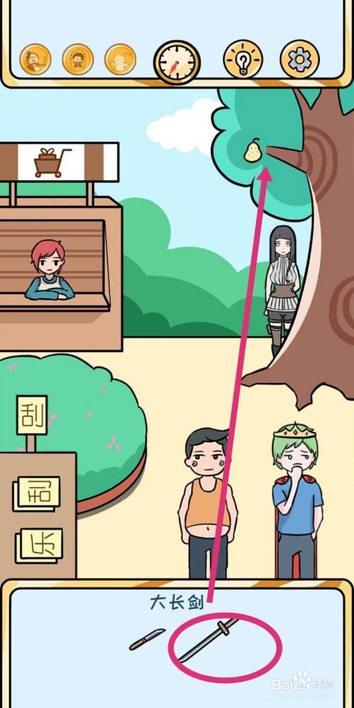 用【大长剑】去砍树枝,获得【树枝】和【鸭梨】;