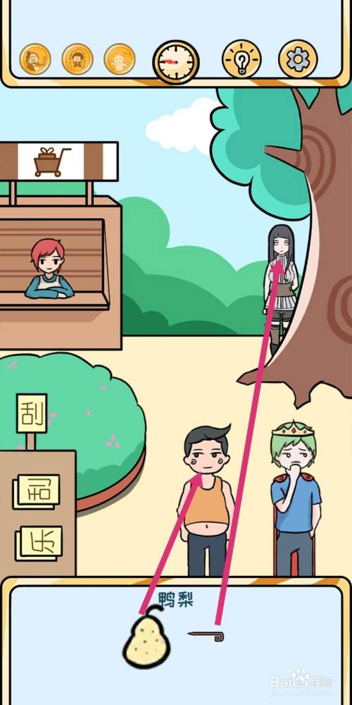 然后,拖动【鸭梨】给小胖,获得【金币】;