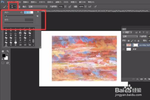 下面,我们找到东西栏的画笔东西,找一个本身喜好的画笔笔触,设置好画笔像素。