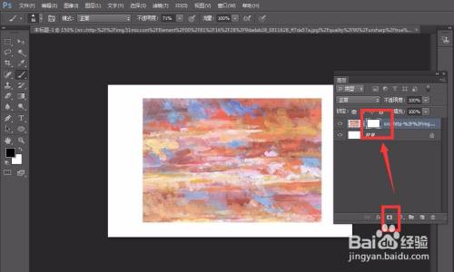 在图层面板上选中图片图层,然后点击图层面板下方的添加图层蒙版的按钮,如下图。