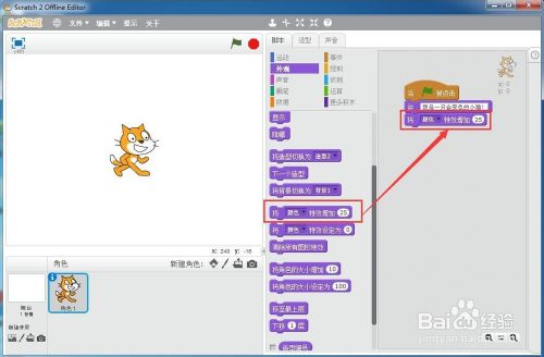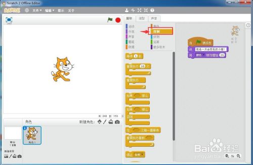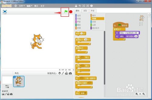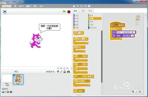 小猫就起头措辞并变色,一个会措辞的变色猫就在scratch中建立好了。