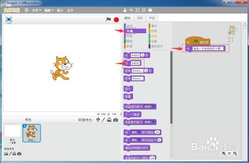 点击外不雅,添加说号令,并输入小猫的措辞内容我是一只会变色的小猫!