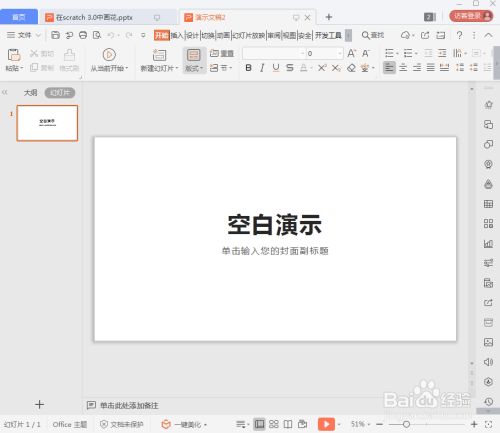 将单击此处添加题目和副题目两个输入框删除,呈现一个空白页面;