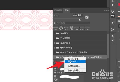 想要删除可以直接在选定的画笔编组上,右击鼠标,点击删除编组。