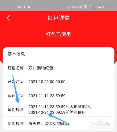 最后可以在红包详情页中看到延期法则,若是无法延期,申明可能已颠末了延期时候,或者可以扣问客服。