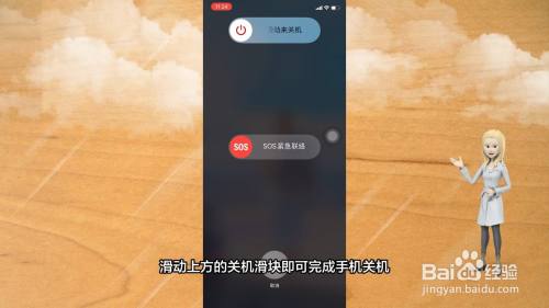 找到下面的关机号令,打开它就会呈现关机界面,滑动滑块也可完当作手机关机。