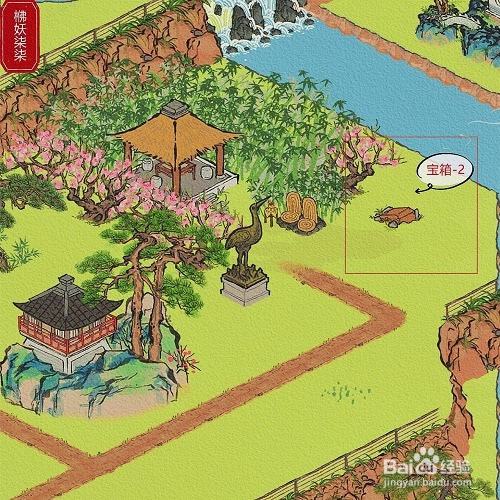 宝箱2——玲珑棋局,仙鹤铜像旁边(金画轴×3)