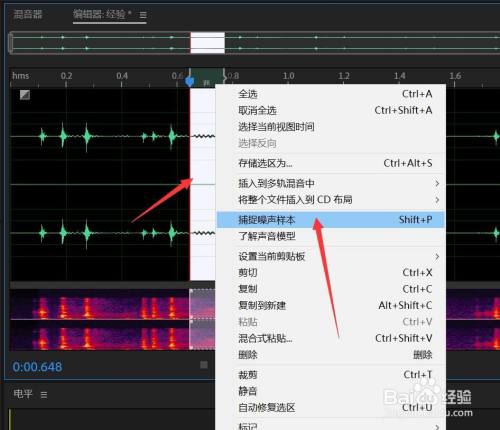 选择好噪音部门并右击,在弹出的菜单中选择“捕获噪声样本”。