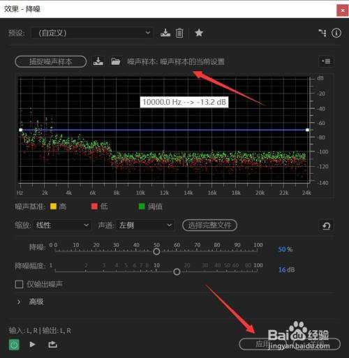 此时在弹出的新窗口中就是以之前选择的噪声为样本的,点击“应用”。