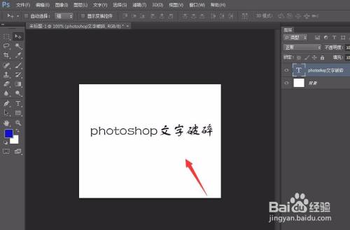 我们点中图层蒙版缩略图,用画笔在画布上移动,如下图,就可以看到文字破裂结果了。