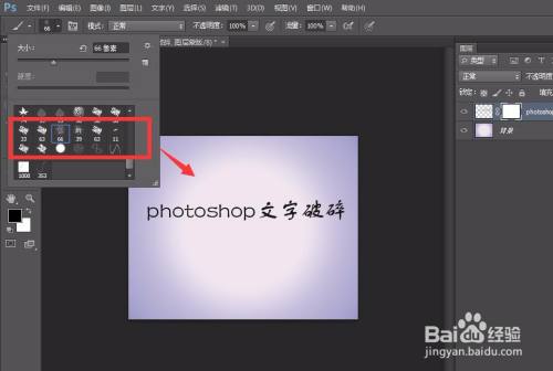 选择东西栏的画笔东西,如下图,选择这种分离的画笔笔触。