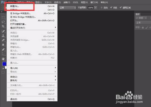 首先,我们打开photoshop,点击左上角【文件】——【新建】,新建空白画布。