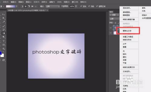 在图层面板的文字图层上右击,选择【栅格化文字】。