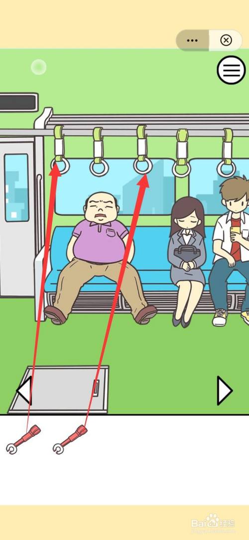 点击地铁上抢座是绝对不成能11左下角按钮,回到第二节车厢,把吊环拖动到胖大叔上方摆布双方
