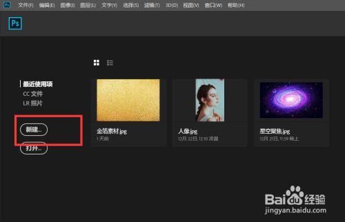首先,我们打开Photoshop,点击屏幕框选的【新建】,新建空白画布。