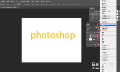 选中文字图层,右击选择【栅格化图层】,如下图所示。