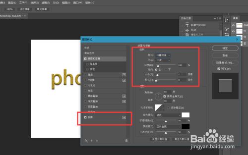 如下图所示我们给文字添加浮雕结果、投影结果,这样一个金箔文字结果就完当作了。